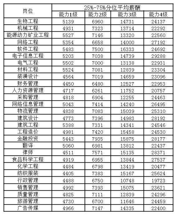 1. 各个岗位不同能力等级25%-75%分位平均薪酬